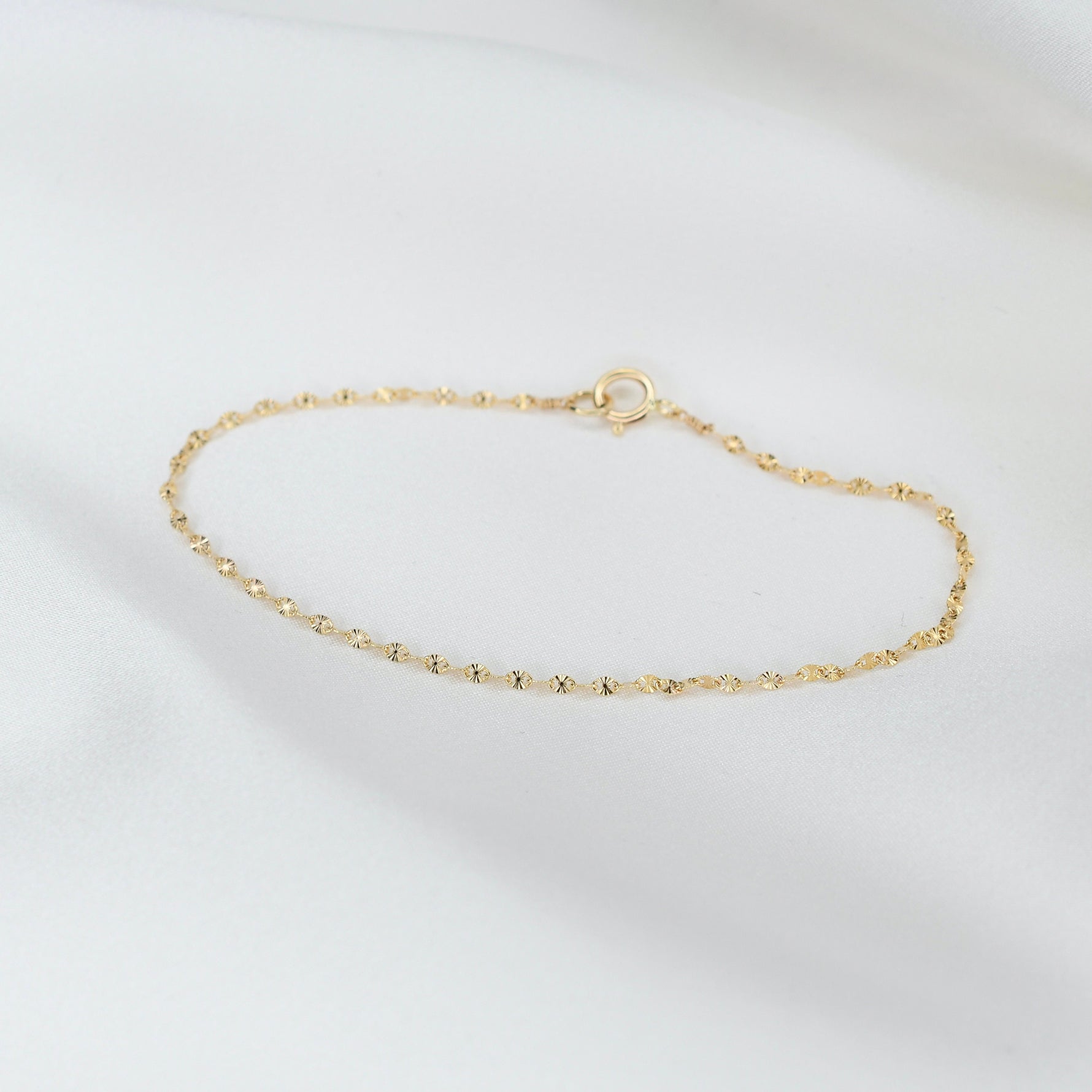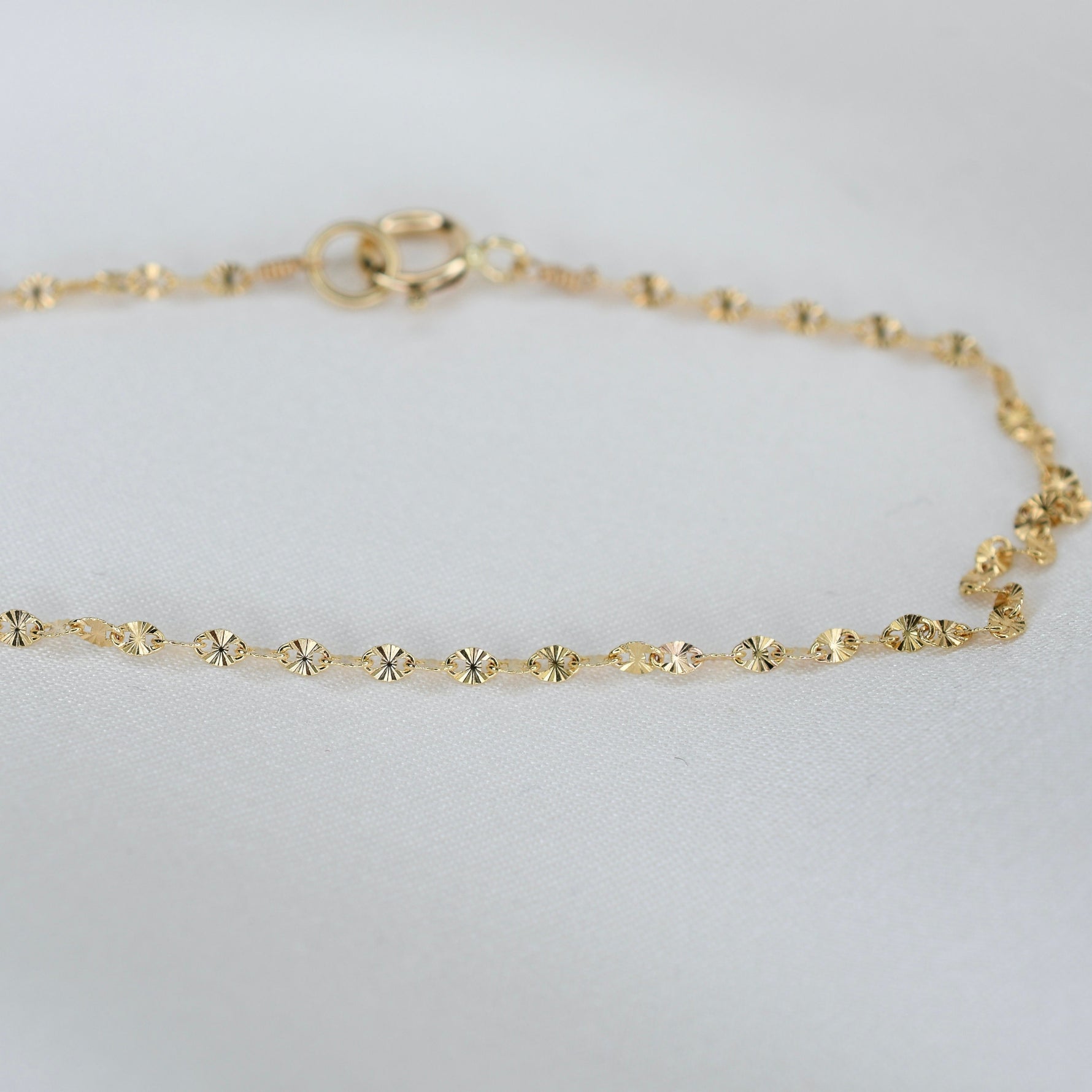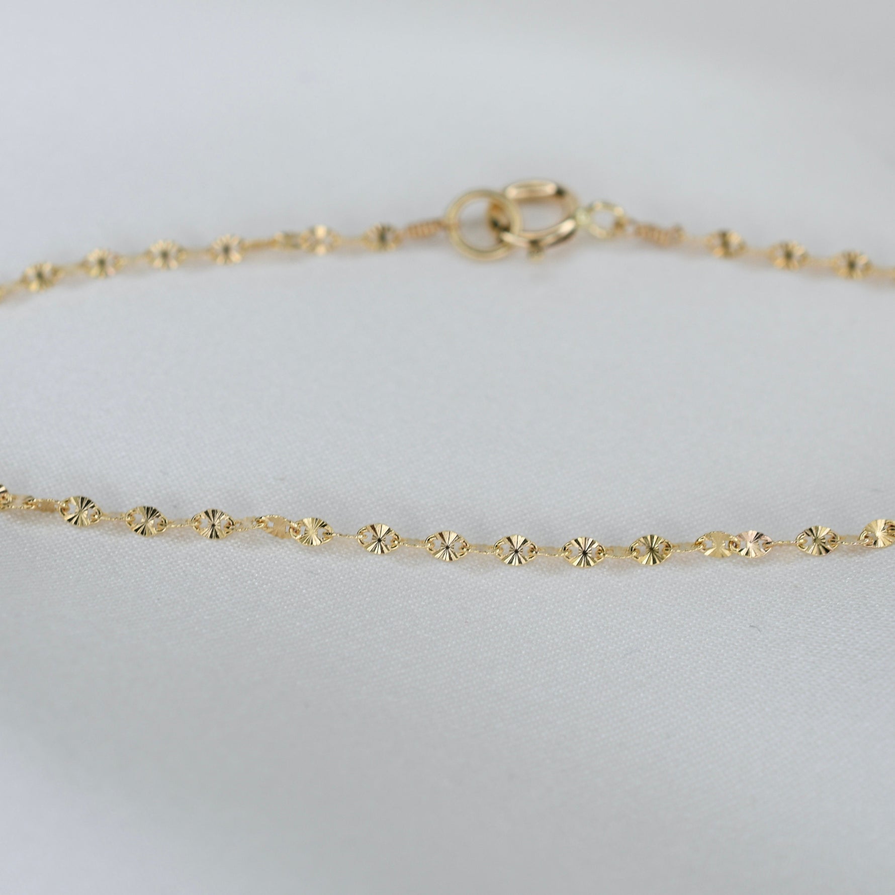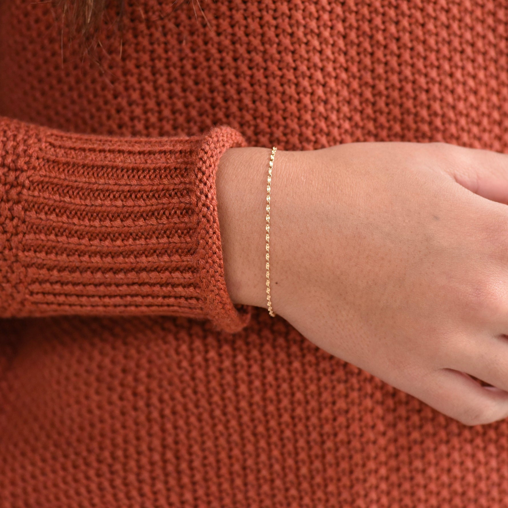 This ultra-dainty 14K solid gold chain bracelet is designed for everyday wear – beautiful worn solo or layered with your favorite pieces.