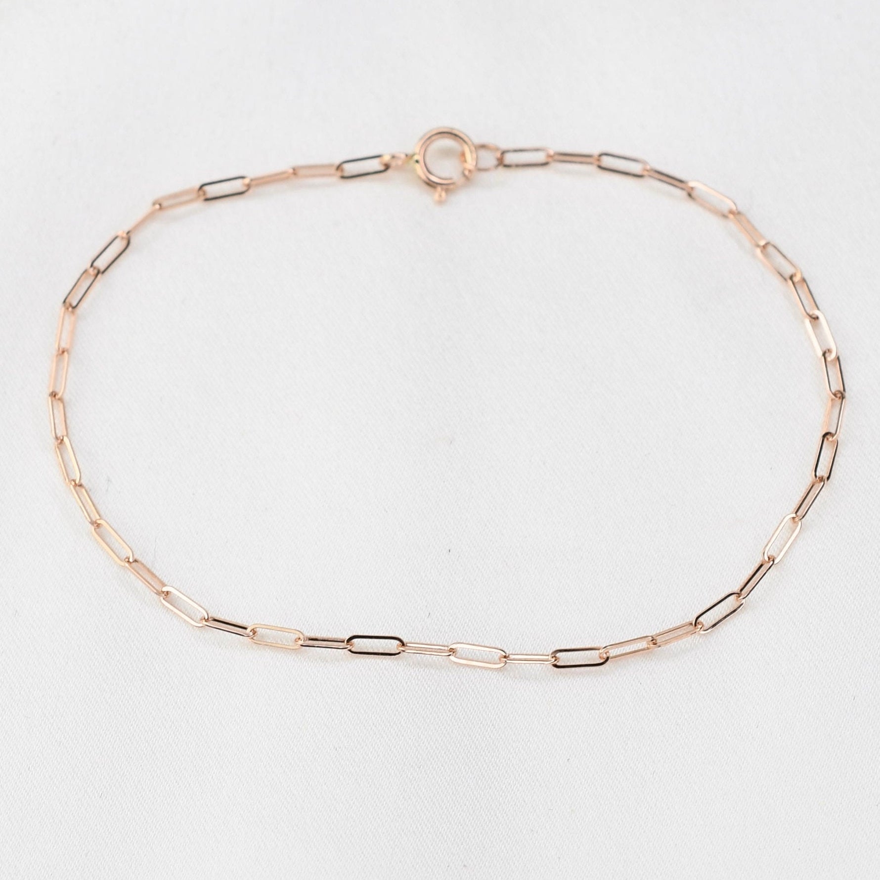 14K Gold Paper Clip Chain Bracelet - 1.5mm Solid Gold
