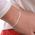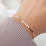 Add a subtle shimmer to your everyday look with this 14K solid gold sparkle bracelet. Designed with a delicate 2.2mm oval mirror link chain, this bracelet reflects light beautifully, creating a soft sparkle with every movement.