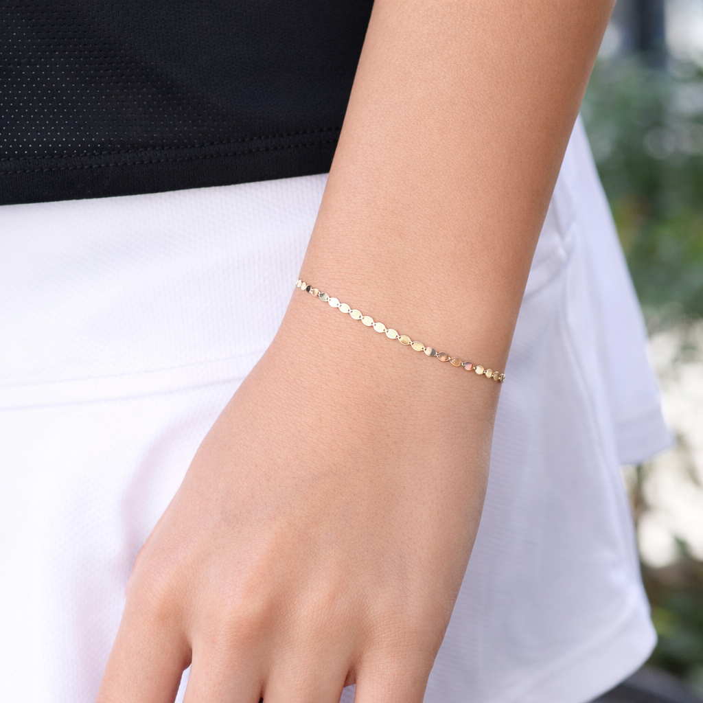 14K Solid Gold Sparkle Bracelet – Dainty Oval Mirror Link Chain Bracelet