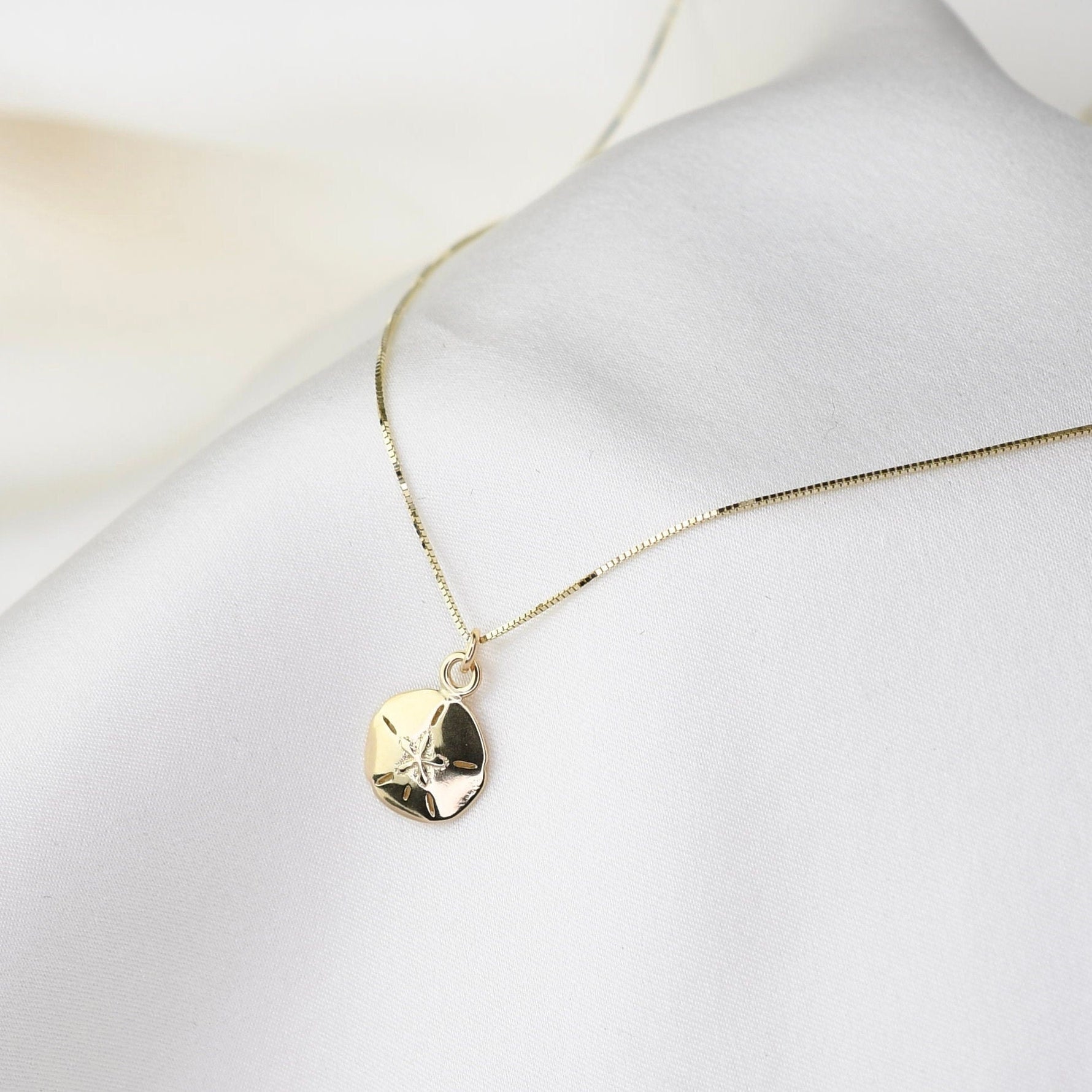 14K Solid Gold Sand Dollar Necklace — Tiny Sand Dollar Pendant