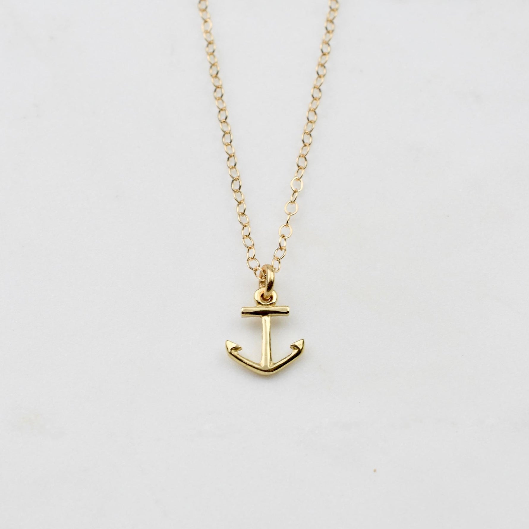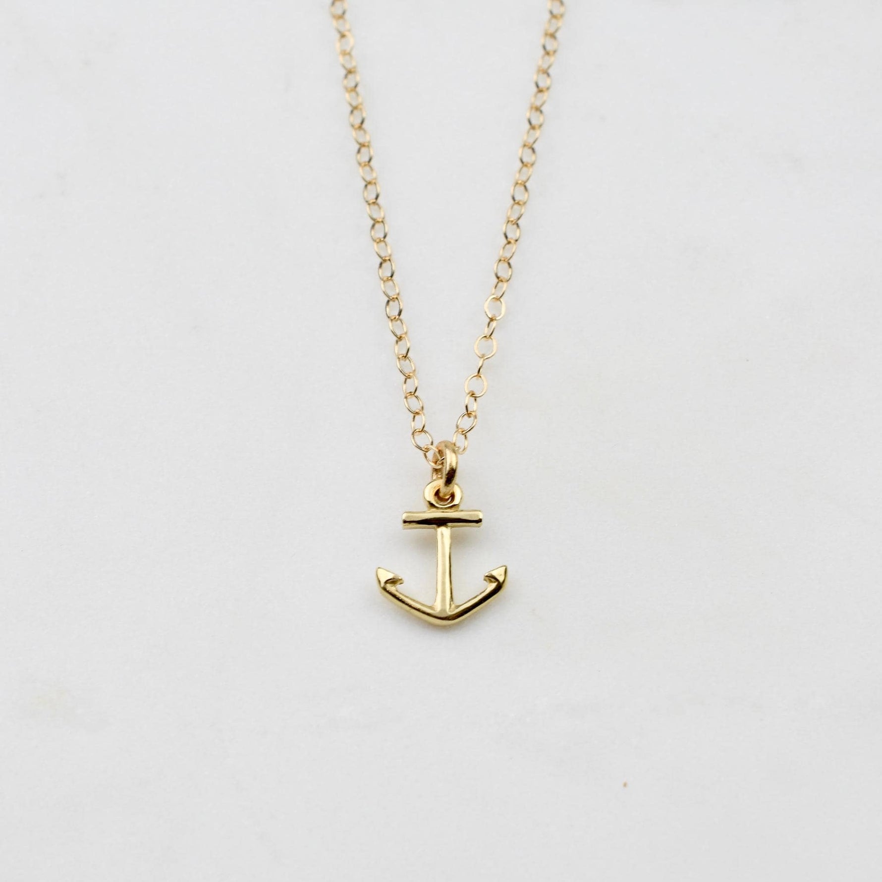 Delicate 14K solid gold anchor necklace with a tiny pendant on a 1.5mm flat cable chain. Wear it alone or layer it with other necklaces for a minimalist look.