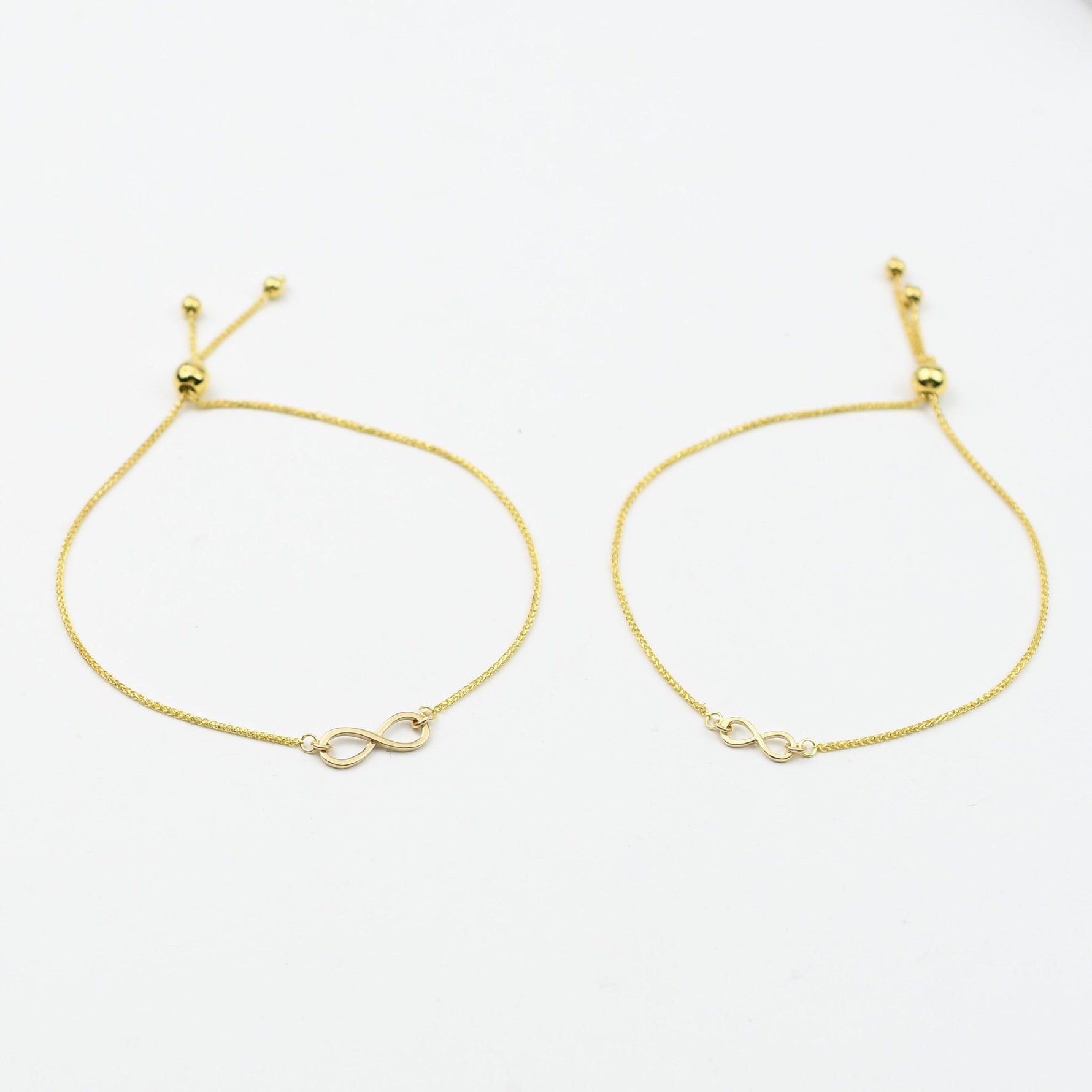 Celebrate the unbreakable bond between mother and daughter with this elegant 14K solid gold infinity bracelet set. A timeless symbol of love, connection, and friendship, each bracelet features a delicate 14K yellow gold infinity charm on an adjustable gold chain—crafted to last for generations.