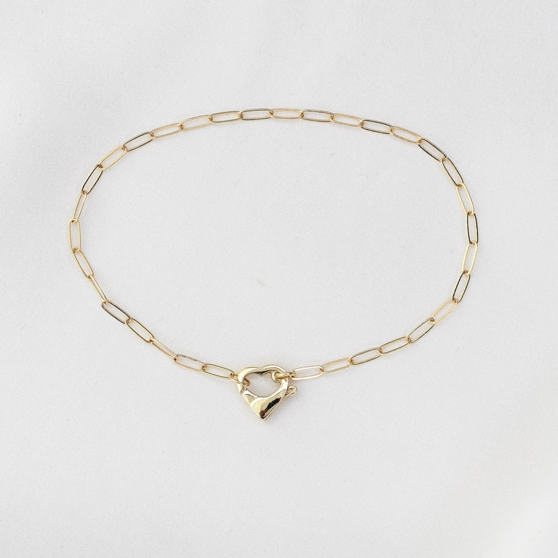 14K Gold Paperclip Bracelet with Heart Clasp