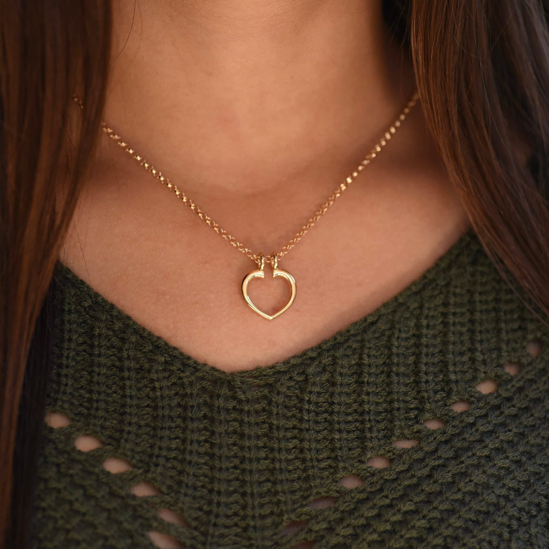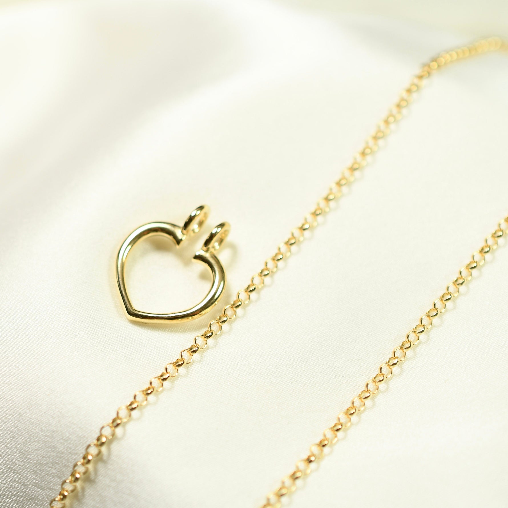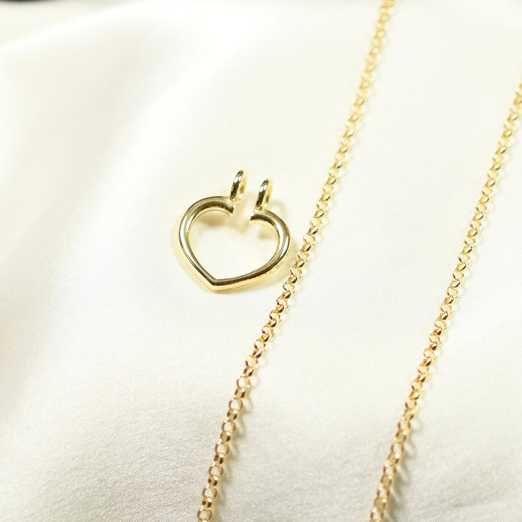Keep your ring safe in style with this solid 14K gold heart ring holder necklace. Features a polished heart pendant on a durable 2.3mm rolo chain. Perfect for daily wear.