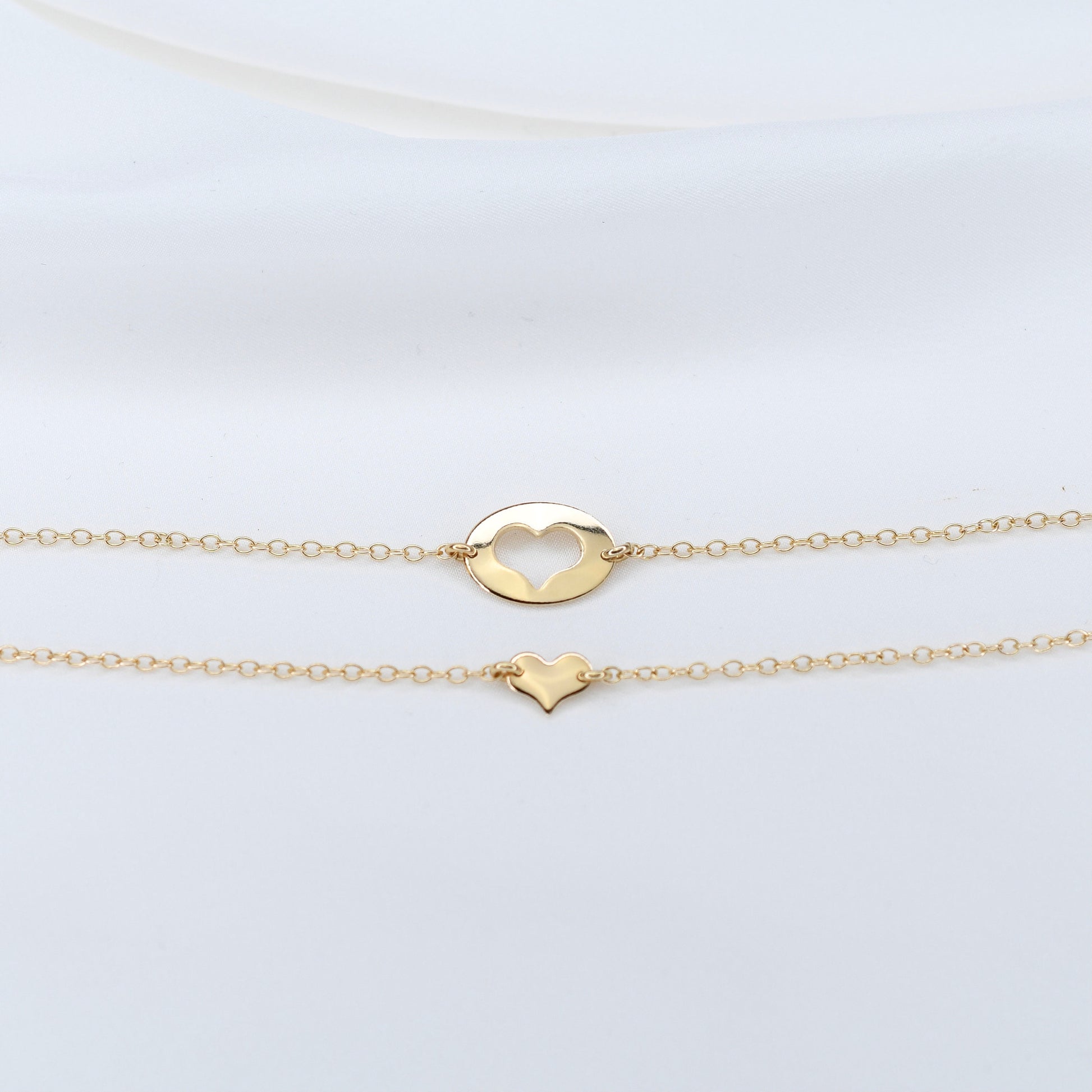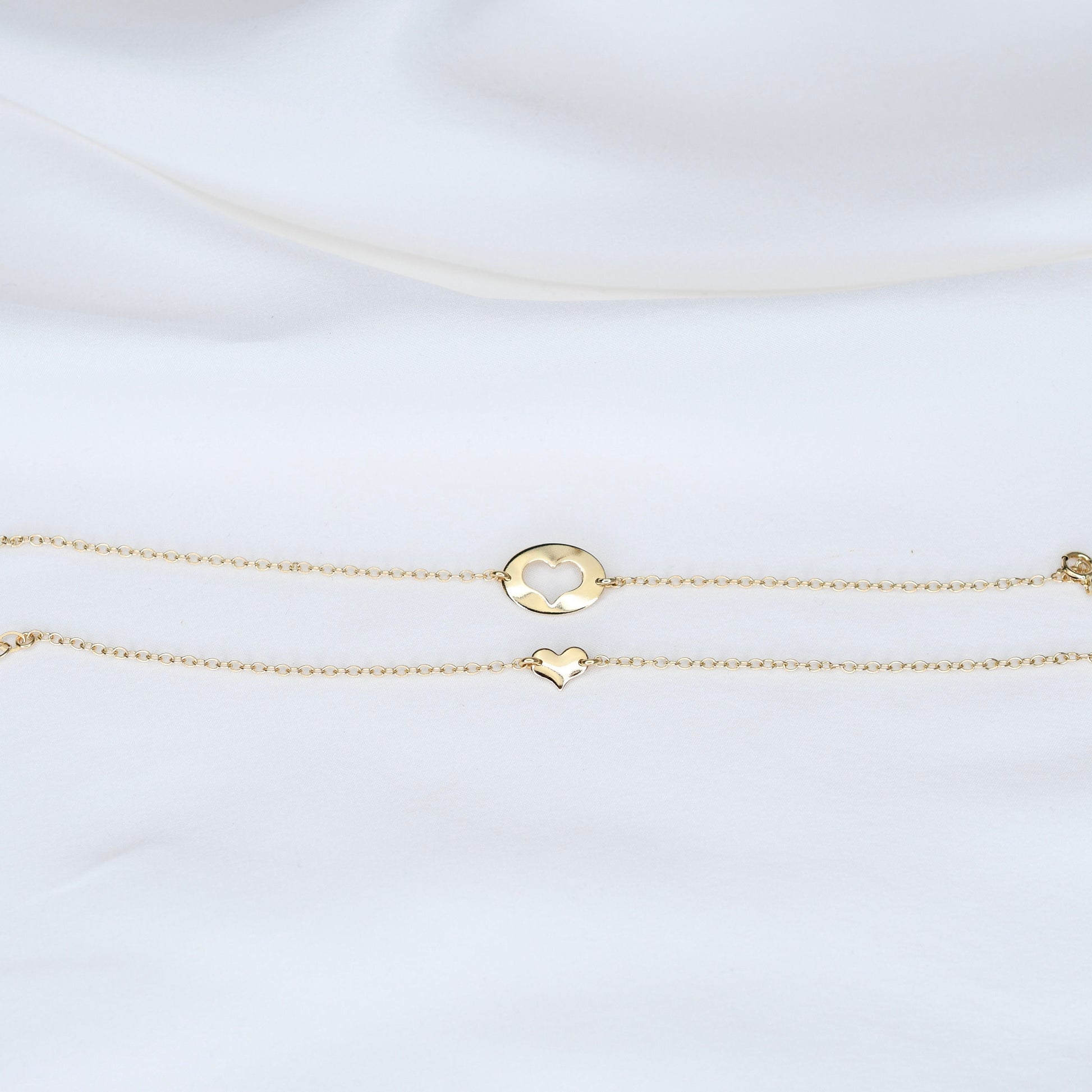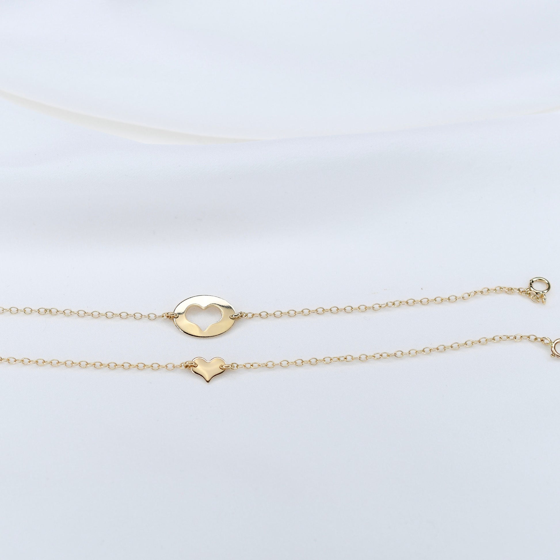 Celebrate your bond with this 14K gold mother daughter bracelet set. Handcrafted with heart charms, dainty, timeless, and perfect for gifting.